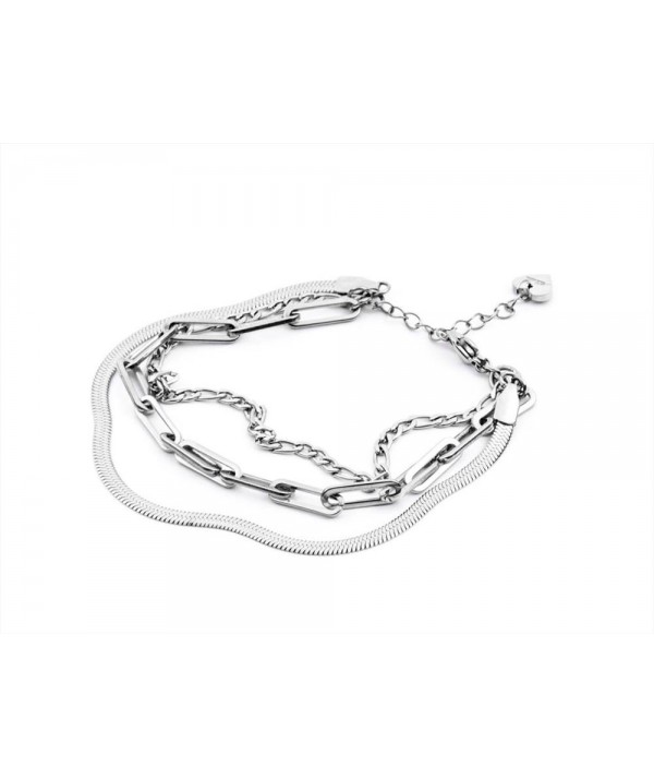 Bracciale donna in acciaio multifilo catene e sepentina con catenina all'estremità per regolare la misura.