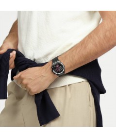 Orologio Uomo Crono, cassa in acciaio inox, cinturino in gomma e fibbia in acciaio, quadrante con elementi che si illuminano al buoi, movimento al Quarzo e impermeabile a 3 Atm.