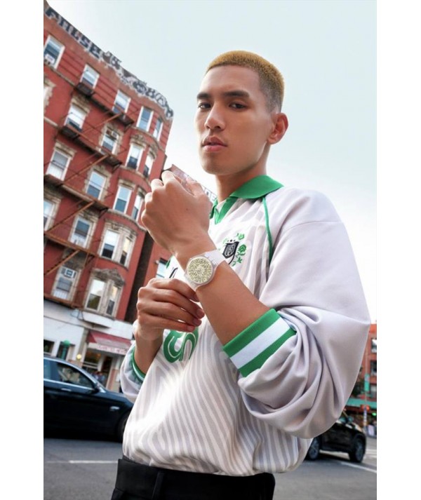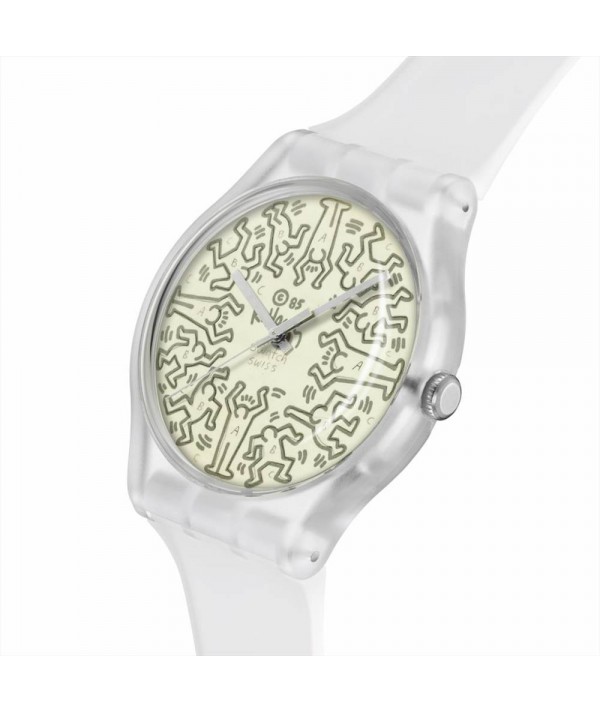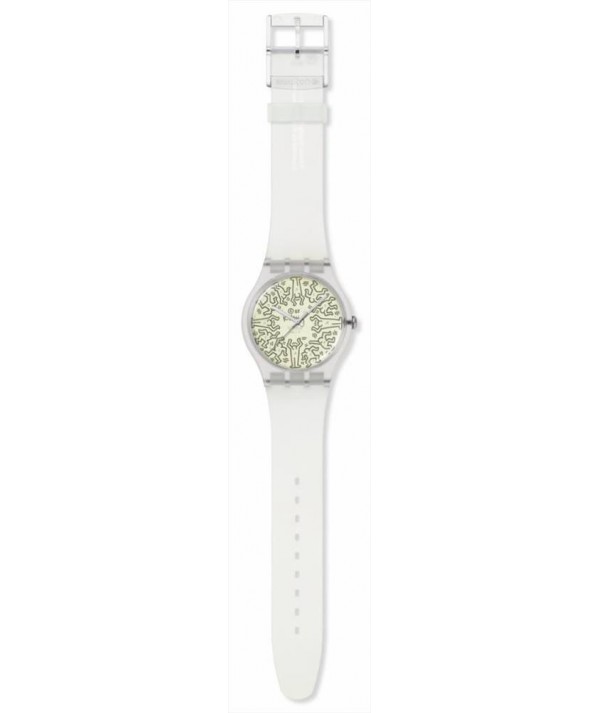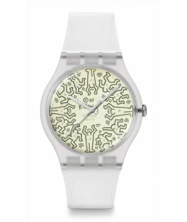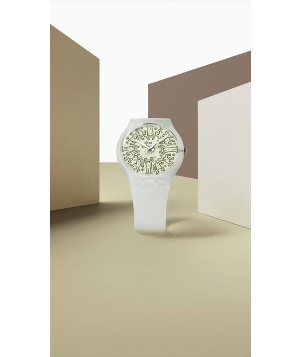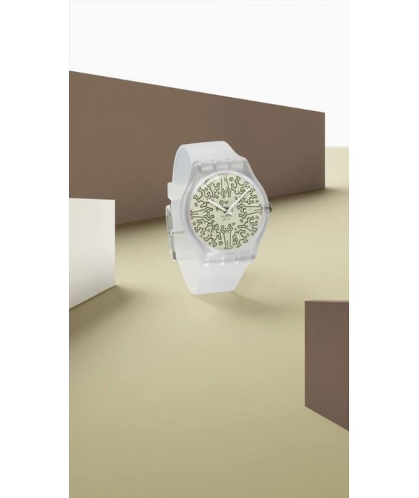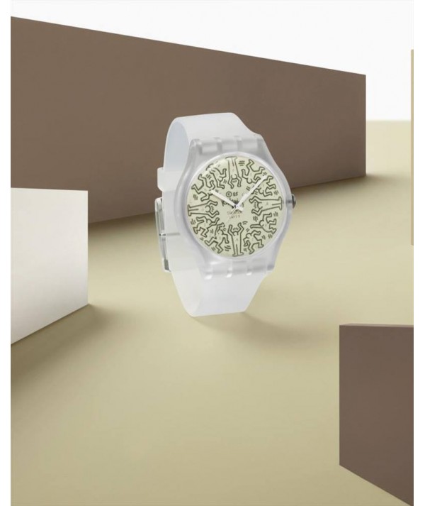 Orologio Uomo, cassa materiale di origine biologico, cinturino in silicone e Fibbia in plastica, Quadrante con disegni, firma e copyright dell'Artista Keith Haring, movimento al Quarzo e impermeabile a 3 Atm.