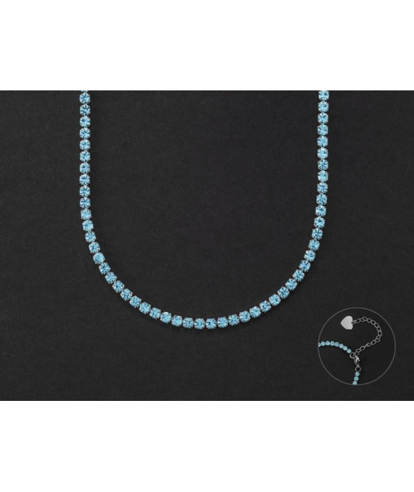 Collana Donna in acciaio con Zirconi colorati celeste, chiusura a moschettone e catenina all'estremità per regolare la lunghezza.