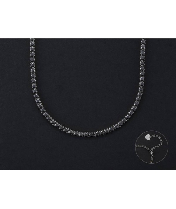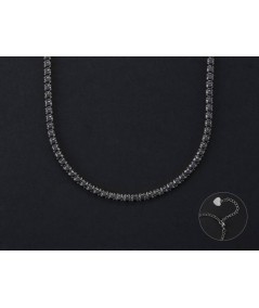 Collana Donna in acciaio con Zirconi neri, modello Tennis, chiusura a moschettone e catenina per regolare la lunghezza.